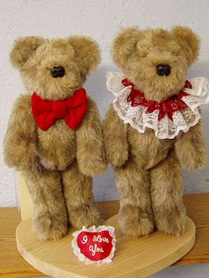 Many of my custom made teddy bears are designed from requests and ideas from my customers and created by me. My husband and I developed the movable joints and structure of the body. Each unique bear is made with love and has it's own personality...no two bears are ever alike. All bears have movable joints and are lukewarm water, machine washable and low heat tumble dry, unless otherwise stated. The stuffing is non-flammable and hypo-allergenic. We use a quality blend of Acrylic fur; feet and paws are leather or soft suede. The eyes and nose are safety locked.